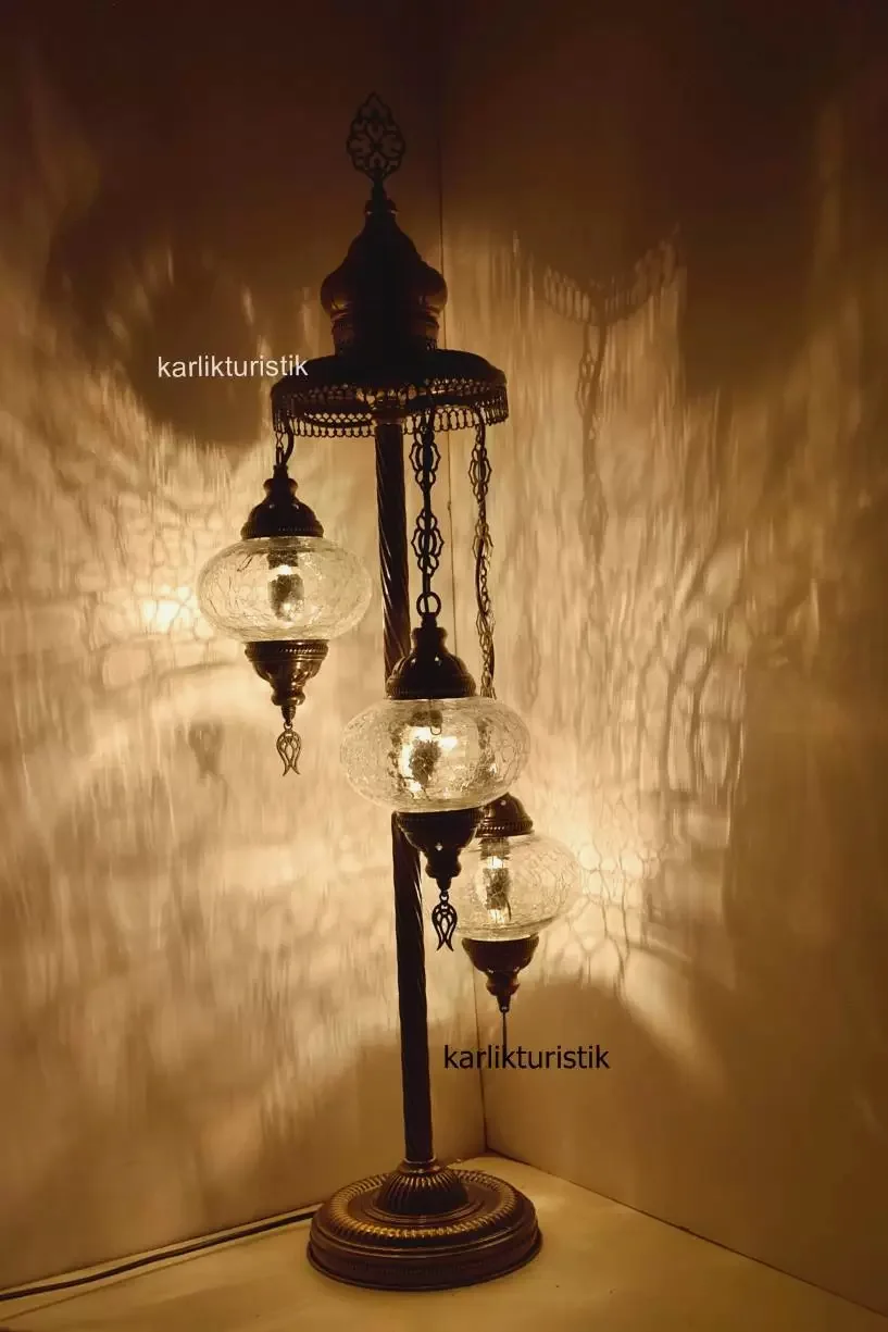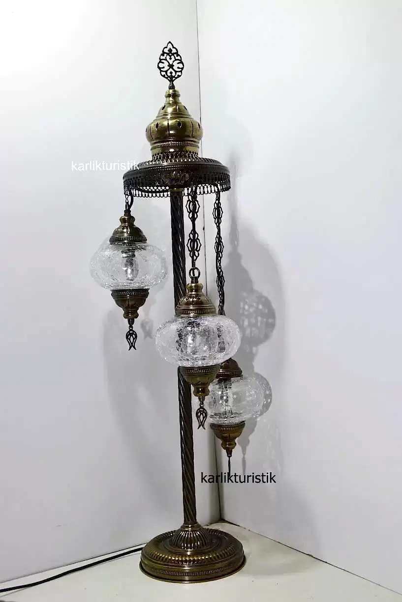 Otantik çatlatma şefaf camlı sıvama 3 lü lambader -I-S-F 5501 .Ürünün apratı metal sıvamadan oluşmaktadır.Aparatına extra vernik atılarak ,daha uzun ömürlü ve daha parlak olmakdadır. Ürünler yollanmadan tektek denenmektedir. Kullanılan kablolar kaliteli ce sertifikalıdır. Ürün üzerinde ce sertikalı açma kapama düğmesi bulunmaktadır. Ürün tamamen türk malıdır. Ürün genişliği yaklaşık 26cm olup.Yüksekliği 100cm cmdir.Kulanılan ayak çapı 20cm dir ve ürün devrilmemesi için altına ağırlık konulmuştur, güvenle kullanabileceğiniz bir üründür. Ürünün cam kısmı orijinal camdır.Bu üründe kullanılan camın çapı 16cm dir.Camlar solma yapmaz. Ürün ce standartlarında olup e14 küçük ampülle kullanılabilir. Kırılmıycak vaziyette tektek paketlemekdeyiz. Iyi günlerde kullanın.