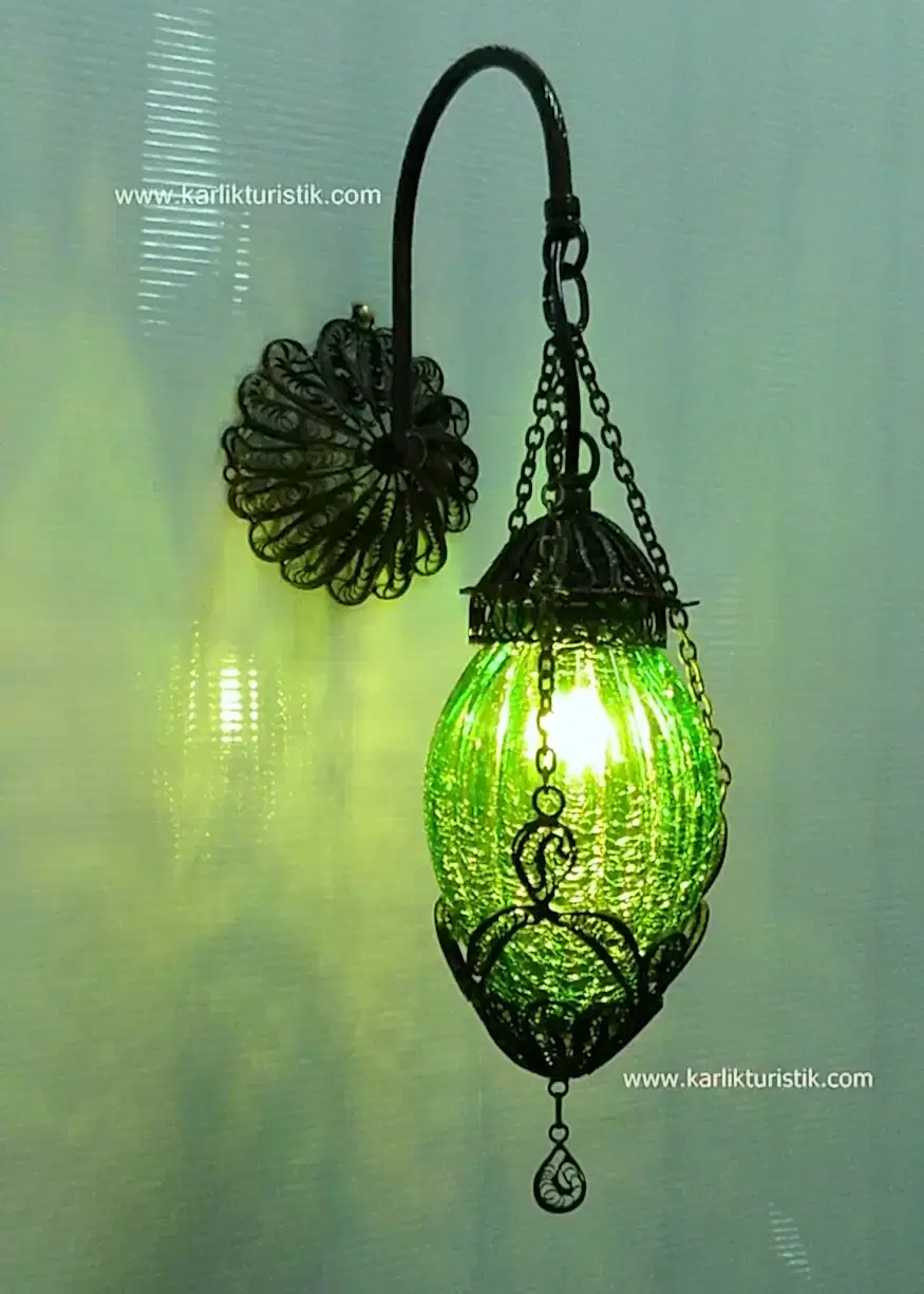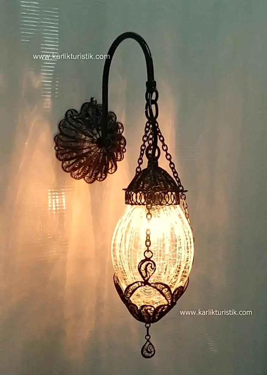 Otantik Duvar Lambası Minik Şimşek Camlı Telkari Tek Zincir Lamba Aplik