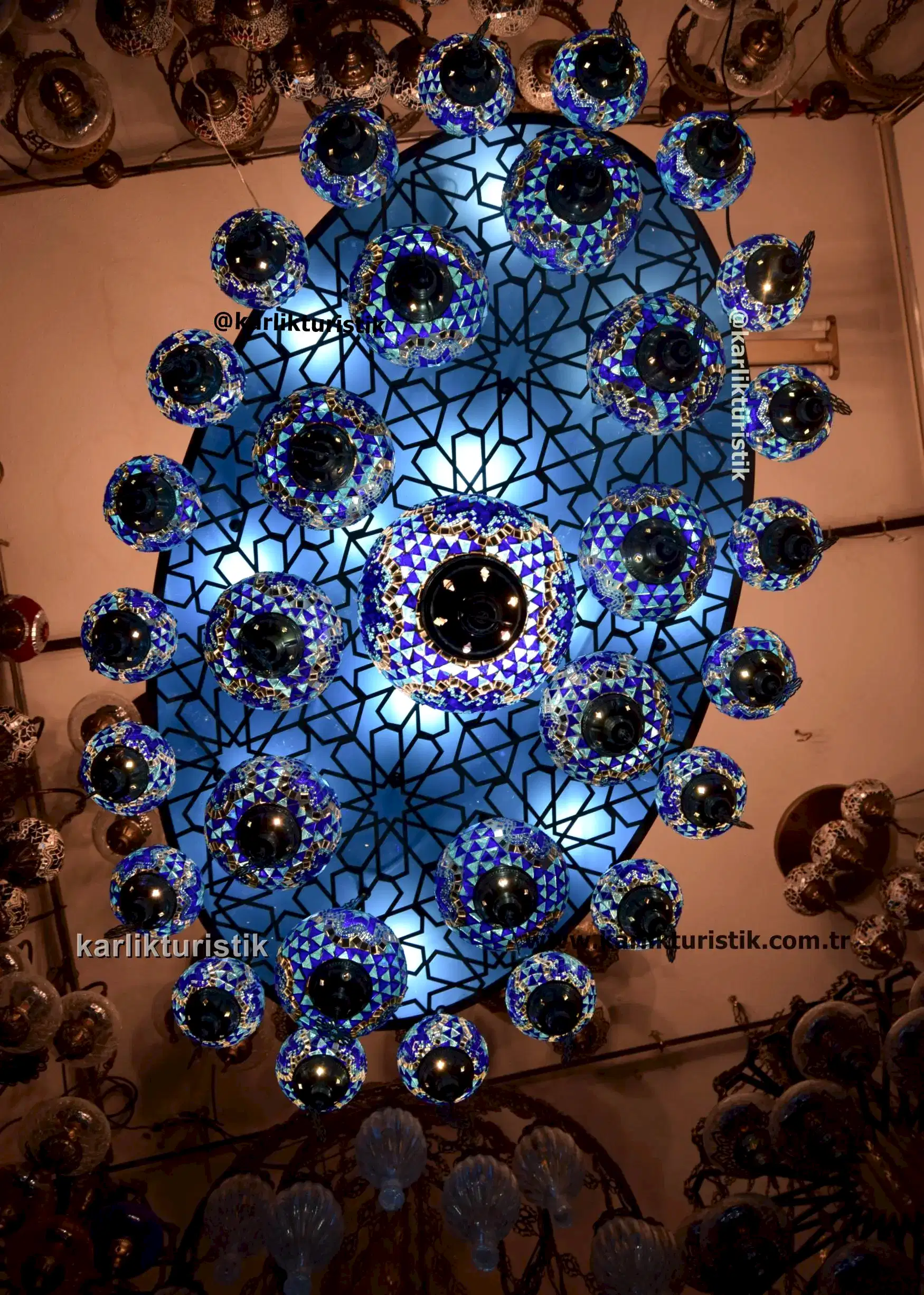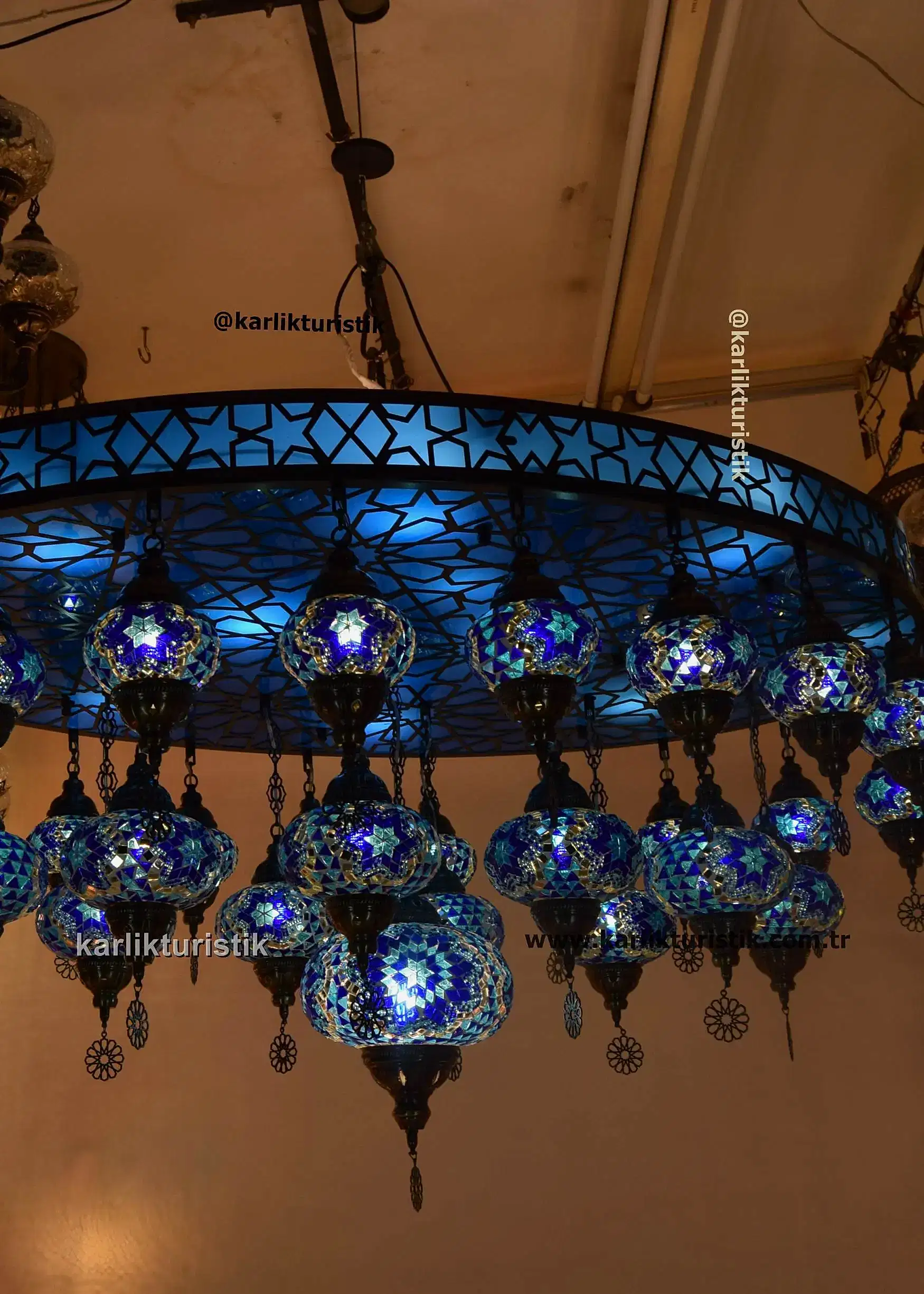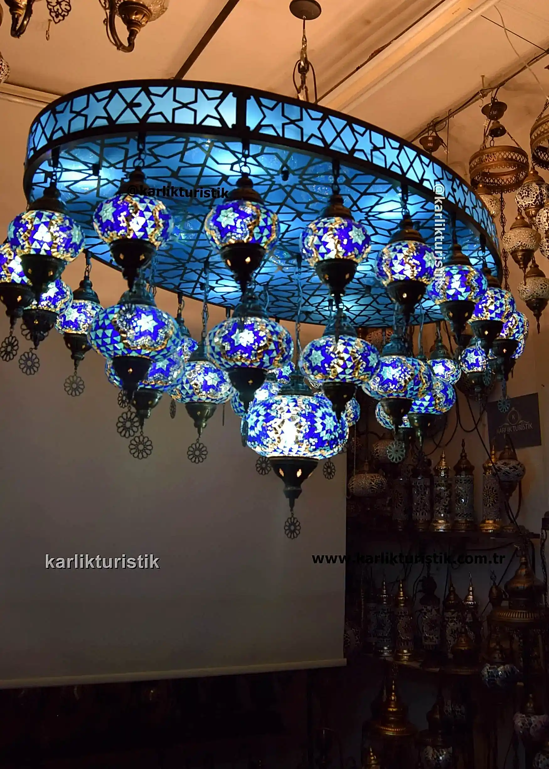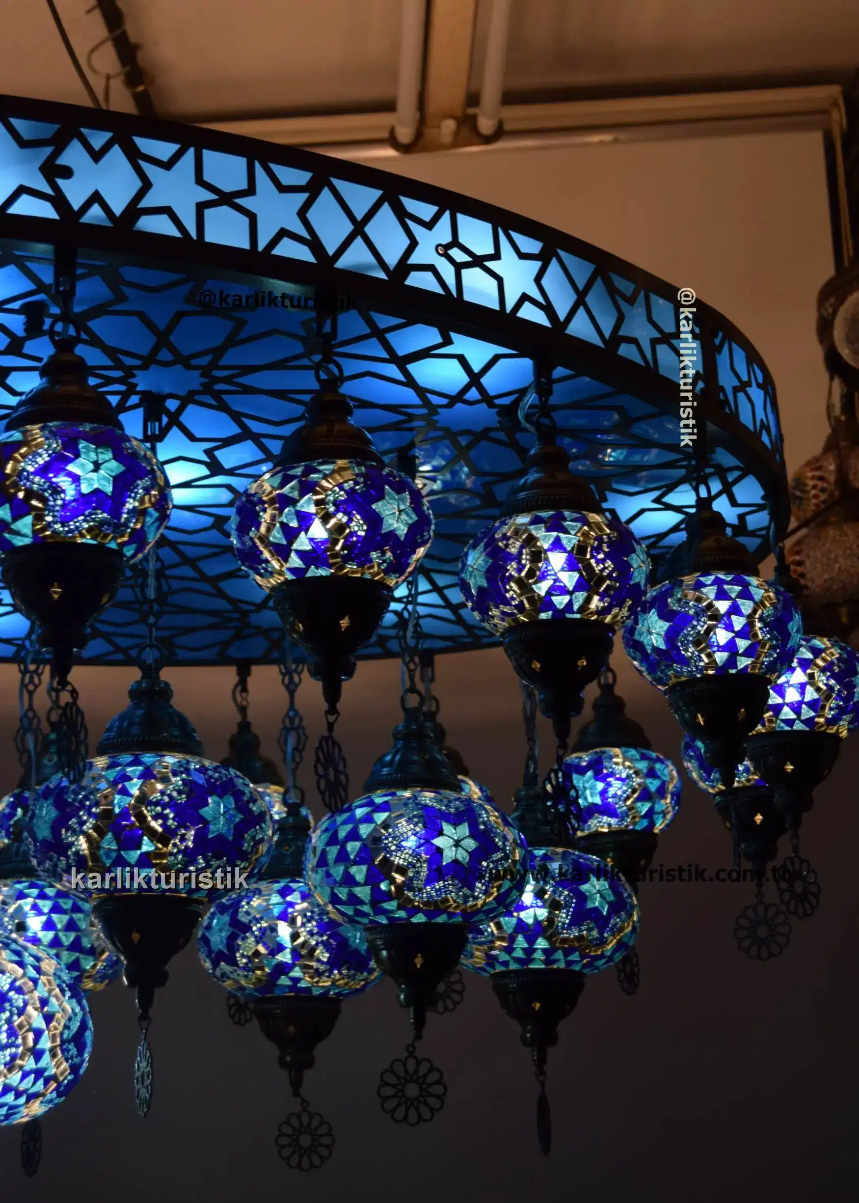 Karlık Turistik atölyesinde, müşterimizin özel isteği doğrultusunda mekana özgü olarak tasarlanan bu muazzam mozaik avize, geleneksel Türk el sanatlarını modern imalat teknikleriyle birleştiriyor. Her detayı titizlikle planlanan bu eser, bulunduğu ortama otantik ve prestijli bir hava katmak için üretilmiştir.